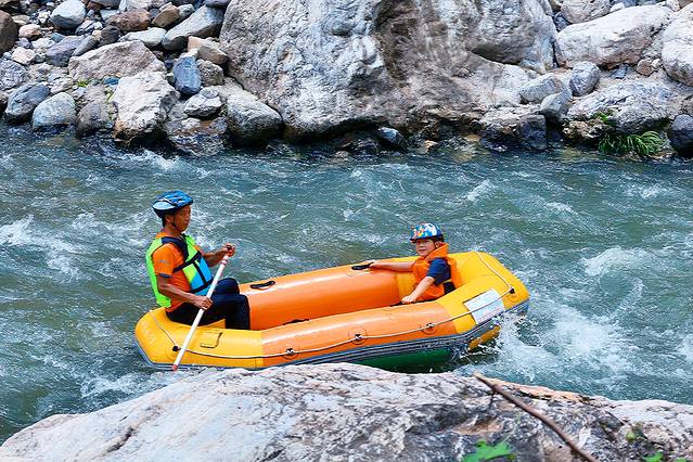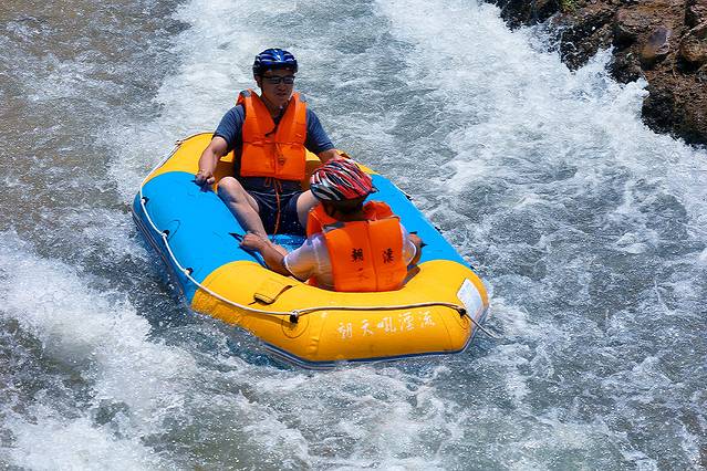 朝天吼漂流从时间上来说可以分为日漂和夜漂,从人数上来说,可以单漂也可以双漂。对于神兽们也比较友好,体重不足35公斤、身高1.5米以下的未成年可以请专业水手护漂。专业水手在激流处可以平稳过渡、把握方向,还可以在平缓处用桨大力划开。