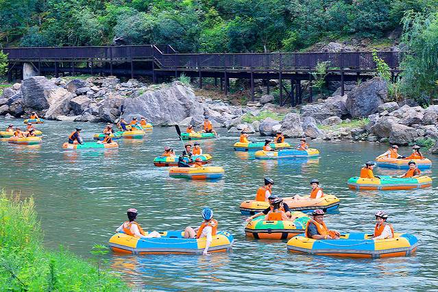 漂流和别的旅游体验方式最大的不同特点在于,人越多越有感觉,人多了才有那种你追我赶的感觉,才有了那种水上追逐的感觉,这才是这个项目最有魅力的地方。朝天吼,每天上万人一起浪的感觉,同类型漂流里人数少的就真的没有这种深刻的体验了。