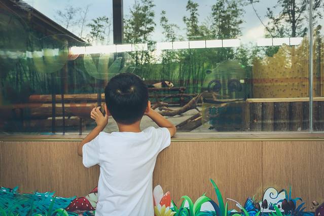 熊猫馆是宝宝们最期待的,世博园内一共有六只可爱的大熊猫,只不过我们下午去的时候其中四只都躲在卧室里睡懒觉,好不容易“捕获”到两只在外围,但是还是大PP对着我们,不太给面子。