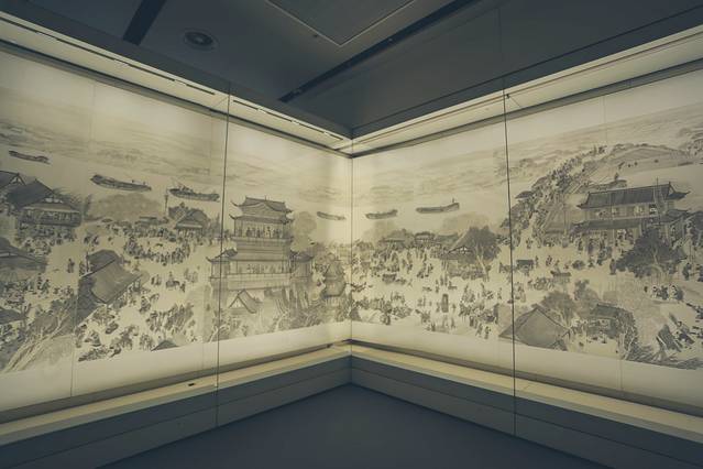 4号馆,展示了世界上知名的运河以及运河城市;5号馆,巨大的“中国大运河史诗图卷”展示了我国运河文化的历史。