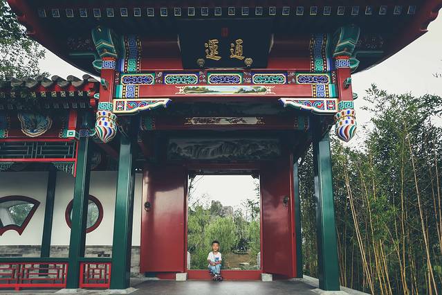比较著名的北景园采用“同月共济、一河相牵”的主题。北京园也是世园会种面积最大的城市展园之一。入口处名为“六闸溢影”以运河上“闸桥”作为景观的设计原型,以花溪结合流线型台地模拟延绵的运河,以此体现运河文化。