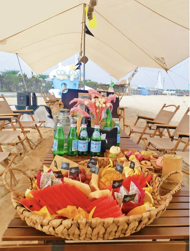 晚餐之前时间用来在海边玩~装饰自己的帐篷屋~