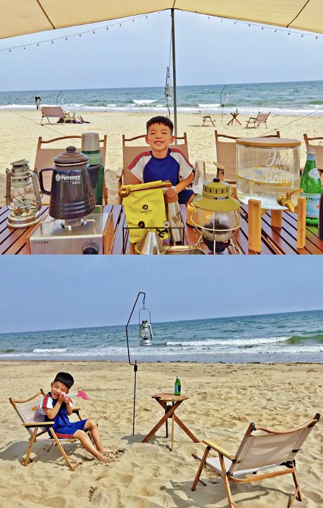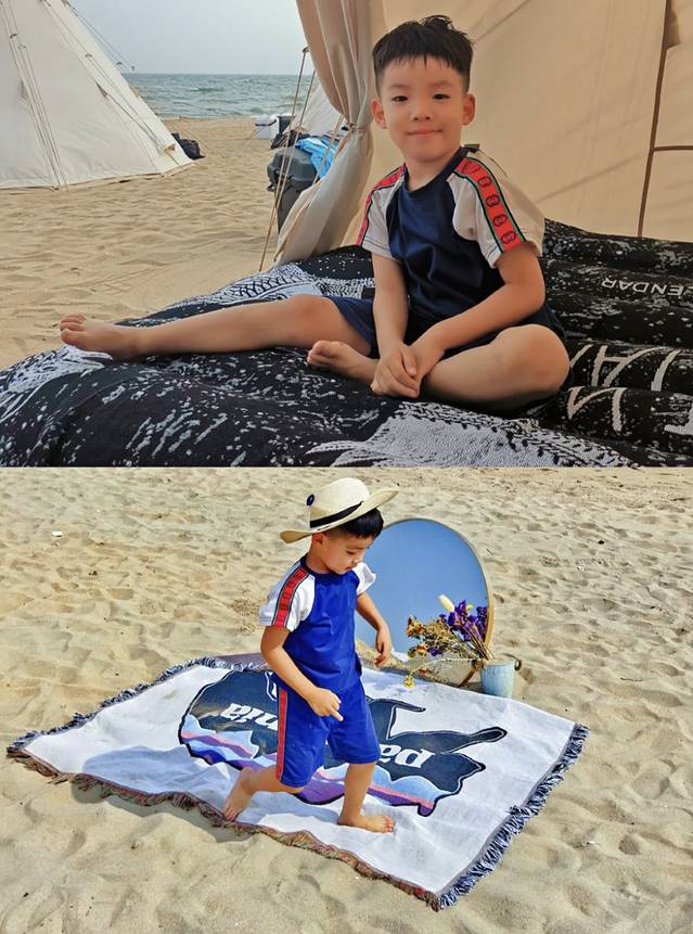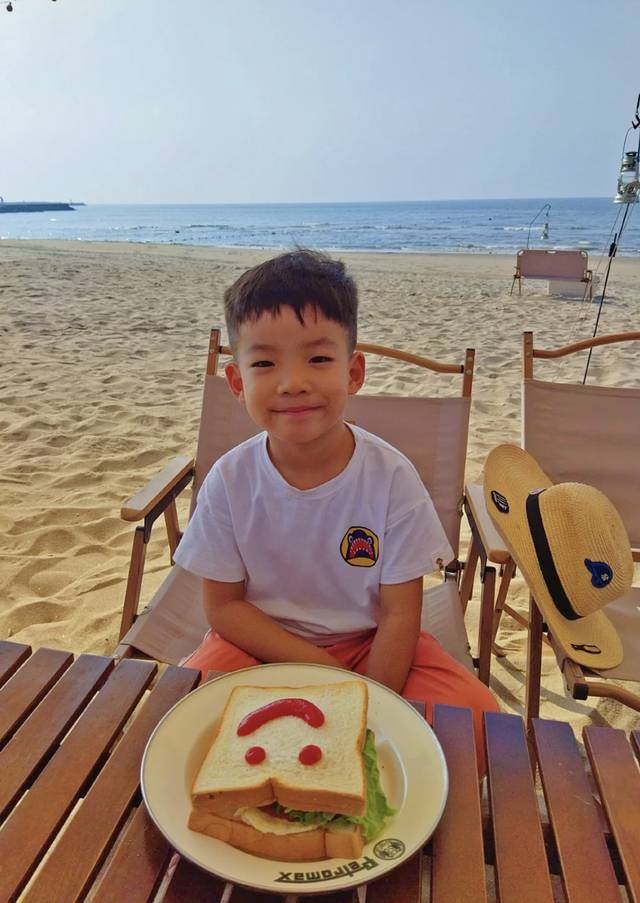 海边白天比较晒,需要注意防晒,夜晚比较凉需要给孩子带件长袖~