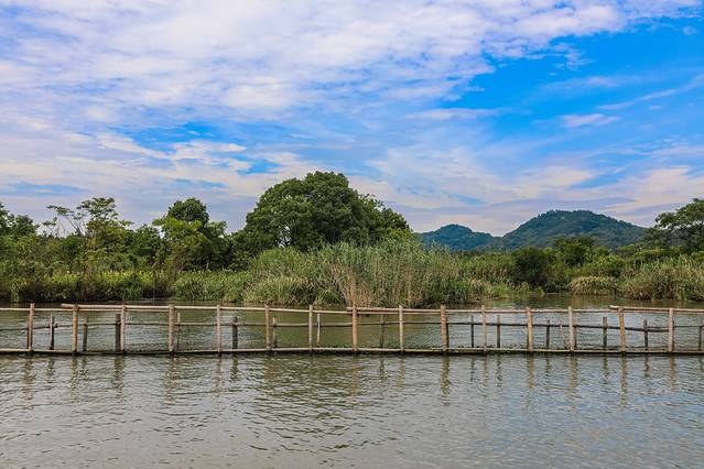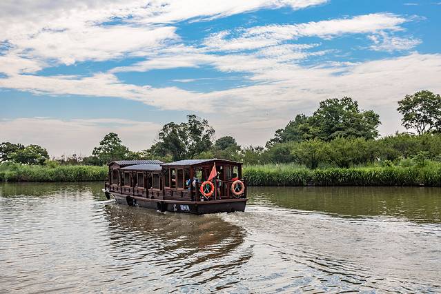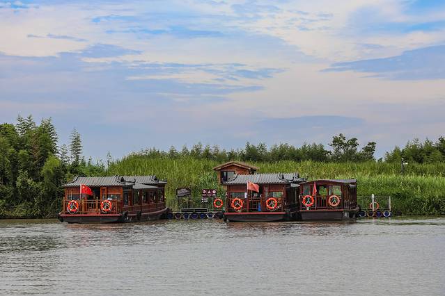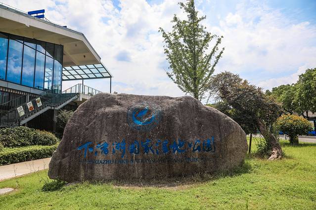 逛下渚湖是必须坐船的,整个游船时间约为50分钟,途中会到蒹葭岛、关鸠岛和乐岛观光,坐船游玩下渚湖加上登岛步行时间,全程约在三小时左右!检票后从游客中心处登船,第一站是去蒹葭岛,又名竹楼岛,在这里上观景台俯瞰下渚湖,3层楼的高度是整个下渚湖的制高点,下渚湖植被繁茂,水网生态富集,在这里可以看到整个湿地的美景。