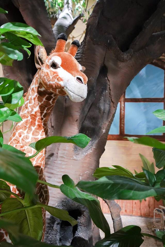 🦒这次我是工作日来的,一进门就看到一个硕大的会动的长颈鹿模型,小葵花籽指这长颈鹿一顿兴奋的乱叫:“脚几鹿”,鹿,鹿……