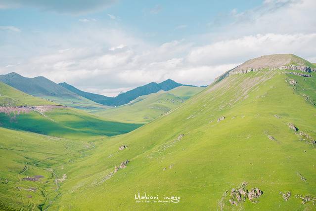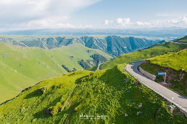 空中草原,相较于河谷草原,无疑是精华中的精华。再翻越了一段盘山公路后,突然眼前豁然开朗,无法想象在山顶竟然隐藏了一片一望无际的绿色海洋,这大概就是空中草原命名的由来。