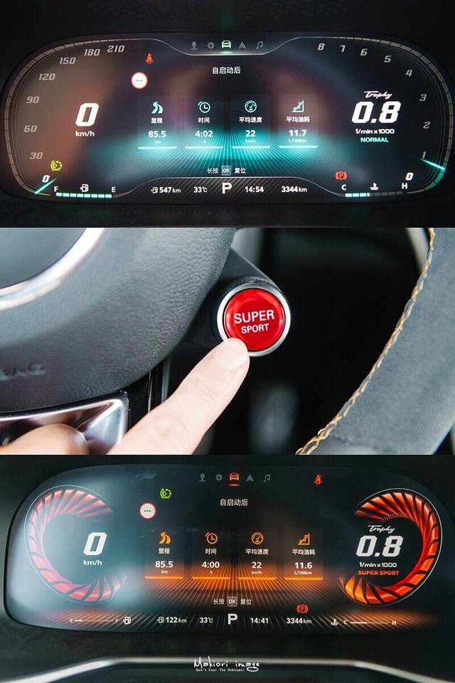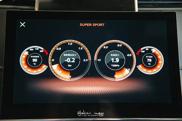 此时的中控屏幕也会进入super sport模式,专业的赛车仪表各项参数一目了然,瞬间点燃了驾驶激情,即使在上坡超车也游刃有余,成为了独库公路上最靓的仔。