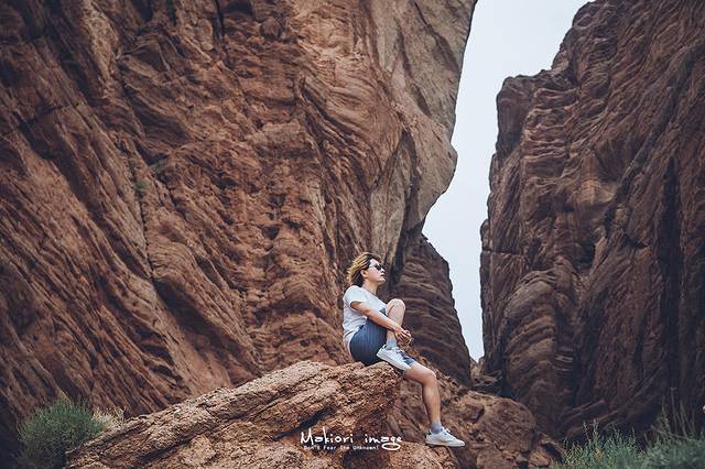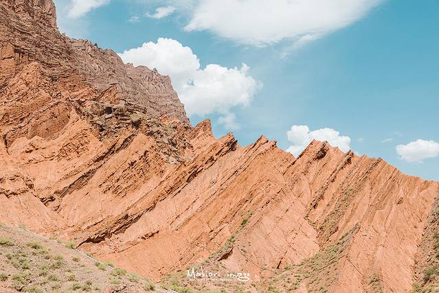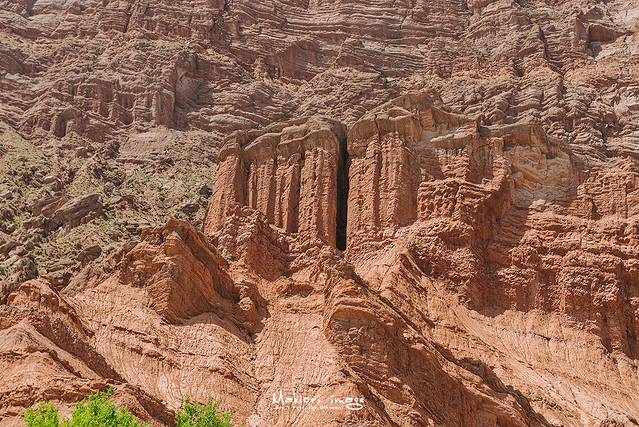 大自然亿万年的风刻雨蚀,才得以造就了这条5公里长的红褐色大峡谷,沟中有谷,谷中有沟,暗红色的山体千姿百态,相当有视觉冲击力。在峡谷的侧壁上,可以看到明显的褶曲和断裂线,朝夕的光影变化最为梦幻,在这里只想做个旅途中的追光者。