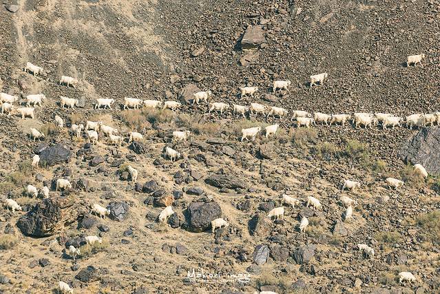 除了马路上,两边的上坡也被浩浩荡荡的羊群给占领。山羊,山羊,原来真的是会飞檐走壁的山上的羊。数千只羊,就在头羊的带领下,一字排开犹如急行军般在山上缓缓前进,很是壮观。