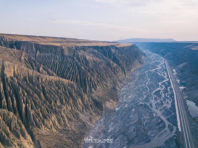 独库公路之南褪去了青山绿水的外衣,奔流而下的天山冰雪融水,流淌在亿万年的红色砂岩层中,切割出神秘的红色大峡谷,站在峡谷前,顿时觉得自身的渺小,犹如沧海一粟,不值一提。