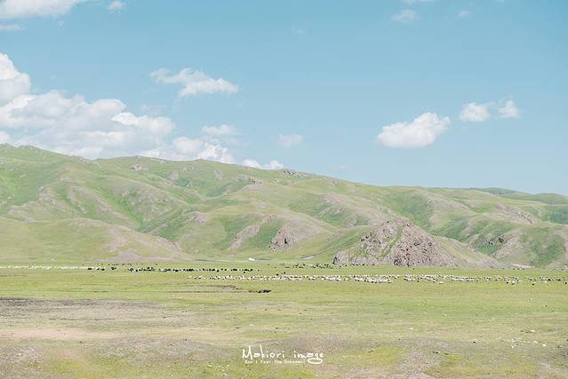 微风掠过的草原涌起一道道涟漪,轻轻地扬起花朵,远眺广袤无垠的天山,心忽然静了下来。万千浮世,你我若尘,站在天地之间,自己是如此渺小。