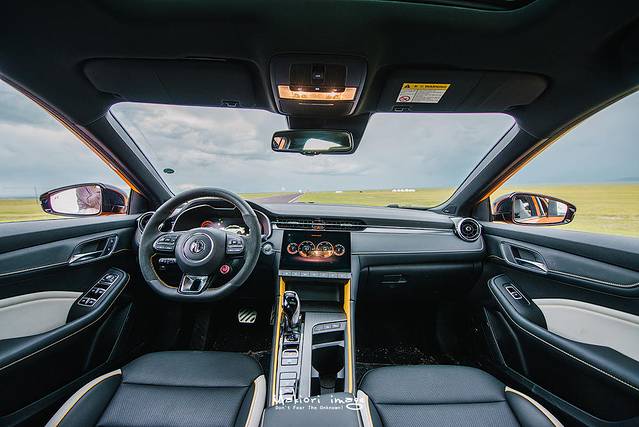 这段公路,可谓是独库公路中最为宽广的一段,道路笔直,视野极佳,我也正好全面审视第三代MG6 PRO的各种智能配置。中控台使用了常规的T字型布局,上下分层的布局呈现出不错的层次感,配合黄色的装饰皮革,显得更加年轻运动。