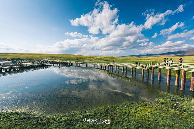 从那拉提出发去巴音布鲁克大概需要2个多小时,这里的草原水草丰茂,遍布着河流和湖泊,而草原周围则由山峦环抱,连绵的丘陵和辽阔的草甸相间,景色十分漂亮,难怪韩寒的电影《飞驰人生》在巴音布鲁克取景。看着窗外的蓝天白云,脑海中情不自禁映出赛车在巴音布鲁克赛道驰骋的画面。来吧,就把生命献给你所热爱的一切吧!