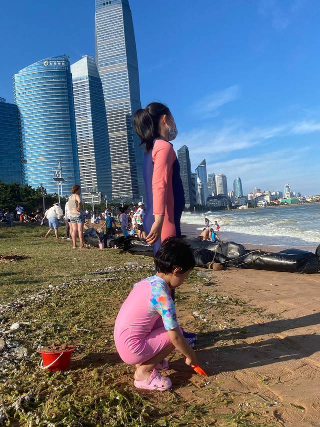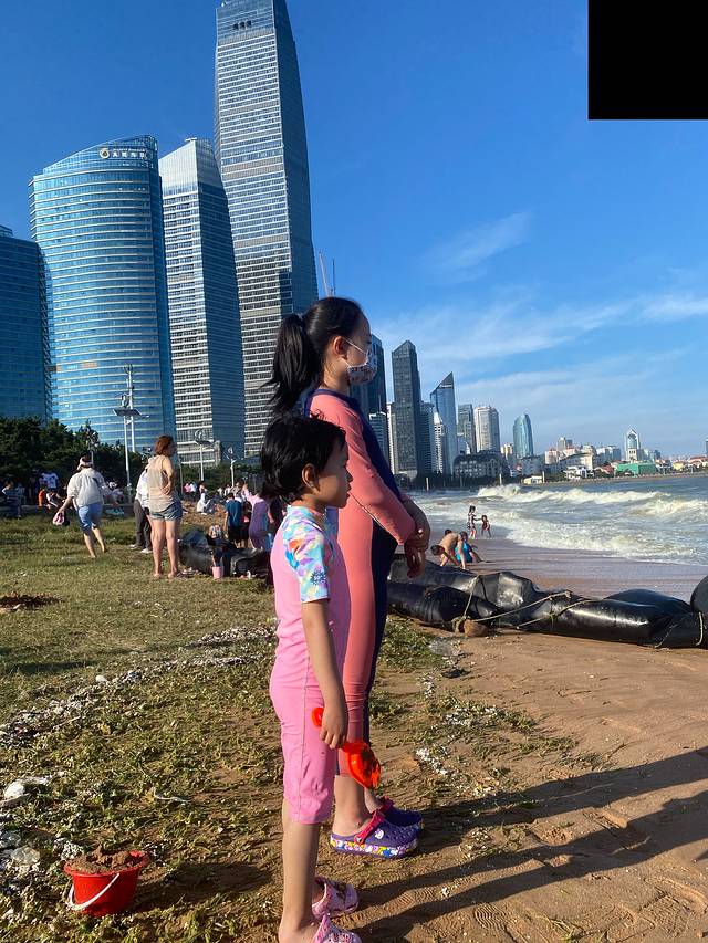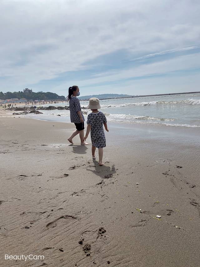 到达八大关,朵朵被附近的沙滩🏖️“截流”了,踏浪 追逐 玩的停不下来,姐姐一再说 ——走吧 咱们下午再来下海玩水,全当听不见 ,直到最后一屁股坐在海水里 才算结束