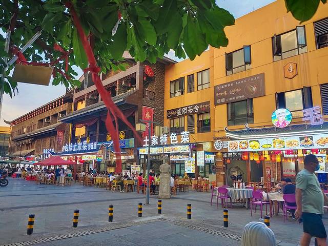 梭布垭景区游览完后,下午我们乘车回到酒店,从酒店后门出来,发现后面是小吃街,想去尝尝土家特色菜的味道,不得不说,傍晚的景色然后吃着饭,整个人的心情很愉悦哈哈哈。
