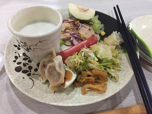 午饭依旧是我喜欢的椰奶,蔬菜沙拉,竟然还有新鲜的芭乐果。