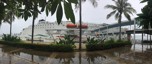 我头一天就提前抵达了三亚,这次选择住的是一般的快捷酒店。领队发信息显示我们第二天中午在凤凰岛国际邮轮码头登船。这一天早上就开始下小雨了,心里非常不安,觉得这样的天气要看到七色海就非常难了。但是心里还是抱有一丝希望。