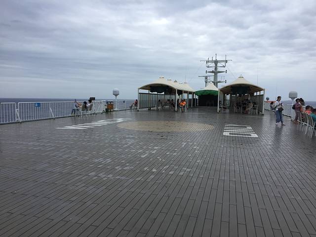 湿漉漉的夹板,雨水浇灭了大家的玩兴。狠多人搬了椅子坐在夹板上吹海风。