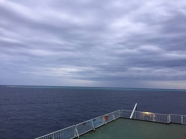 第二天一起床,没洗脸没刷牙依旧是望天。我看云有变薄的迹象。就兴高采烈的去通知在船上认识的几个小伙伴。其实当时接着天气正好,应该马上登岛,因为谁知道我们吃了早饭之后天气会变成什么样子。