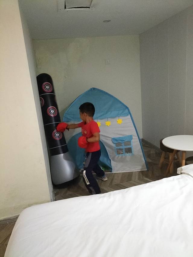 下午一点离开黄龙,出发都江堰,开车8个半小时(导航7个小时左右,国道堵车),入住都江堰爱德森商务酒店(亲子房154元),孩子最喜欢这家酒店,有小帐篷和沙袋可以玩。到了比较晚随便吃了碗面睡觉了。