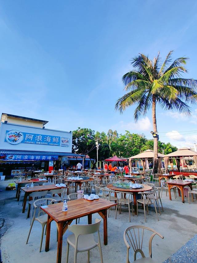 这家在海棠湾的阿浪海鲜走的就是十分亲 民和 接地气的路线。超大的露天区域完全就是盛夏大排档的感觉。
