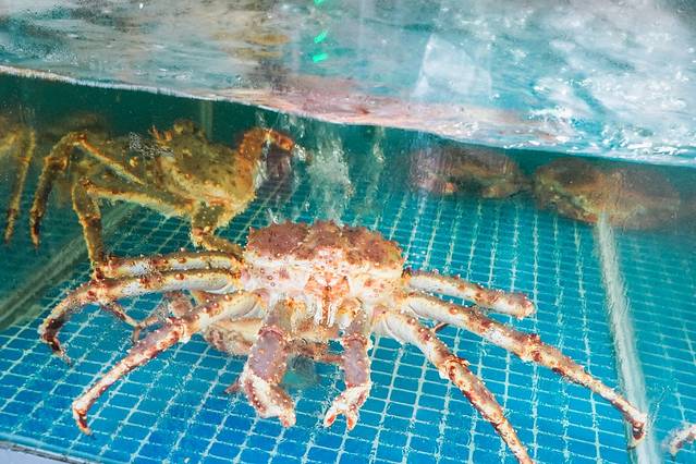 帝王蟹看着就很生猛活泼。人多的话来上一只就很超值。