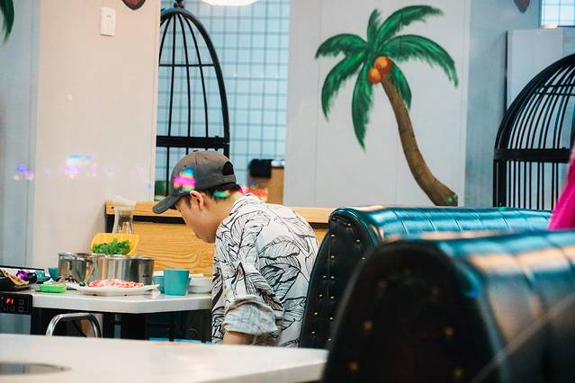 随处可见的绿植和萌萌的涂鸦画,很契合店名萌萌的特质。