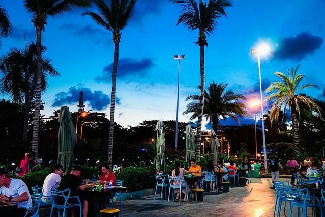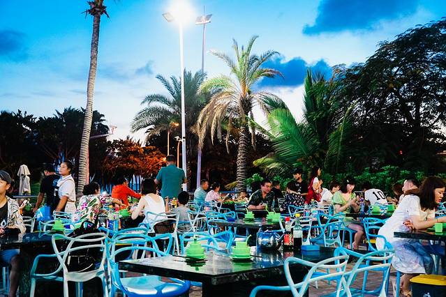 而在椰梦长廊的对面,就看到有一个自 带广 场的海鲜店吸引了我的目光。