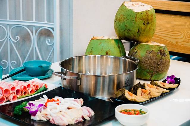 每一锅的锅底都是需要用到3个新鲜椰子,新鲜开盖然后倒入锅底。不加任何的东西。
