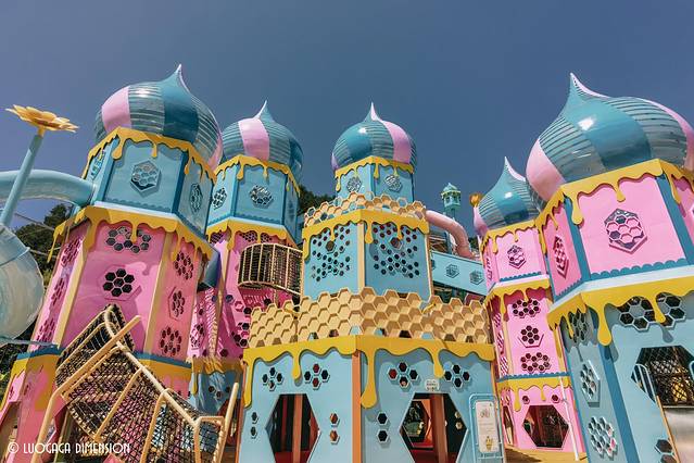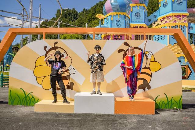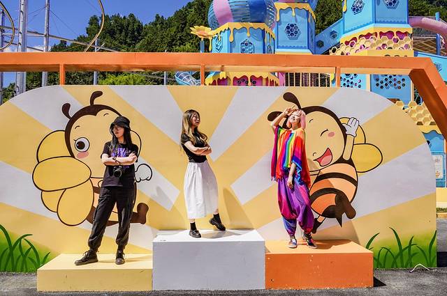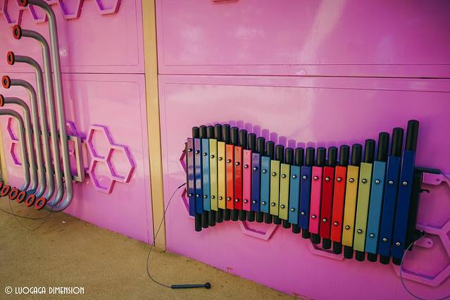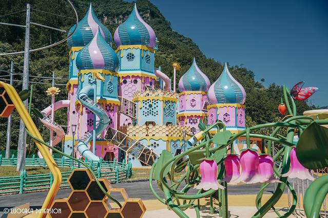 吸引我的不是玩乐,而是色彩,颜色搭配和装置都太可爱了,很适合拍照,蜜蜂雕塑、颁奖台、彩色的墙、城堡等等,随处可拍。