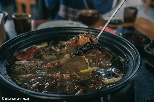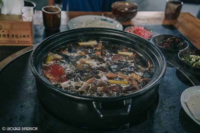 野生菌汤锅里面煮了很多不同种类的菌,鲜美!这是黄水城区一家很有名的土家饭店里吃的。