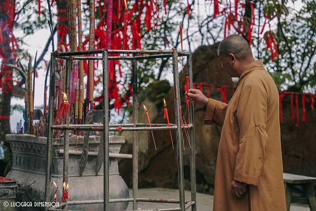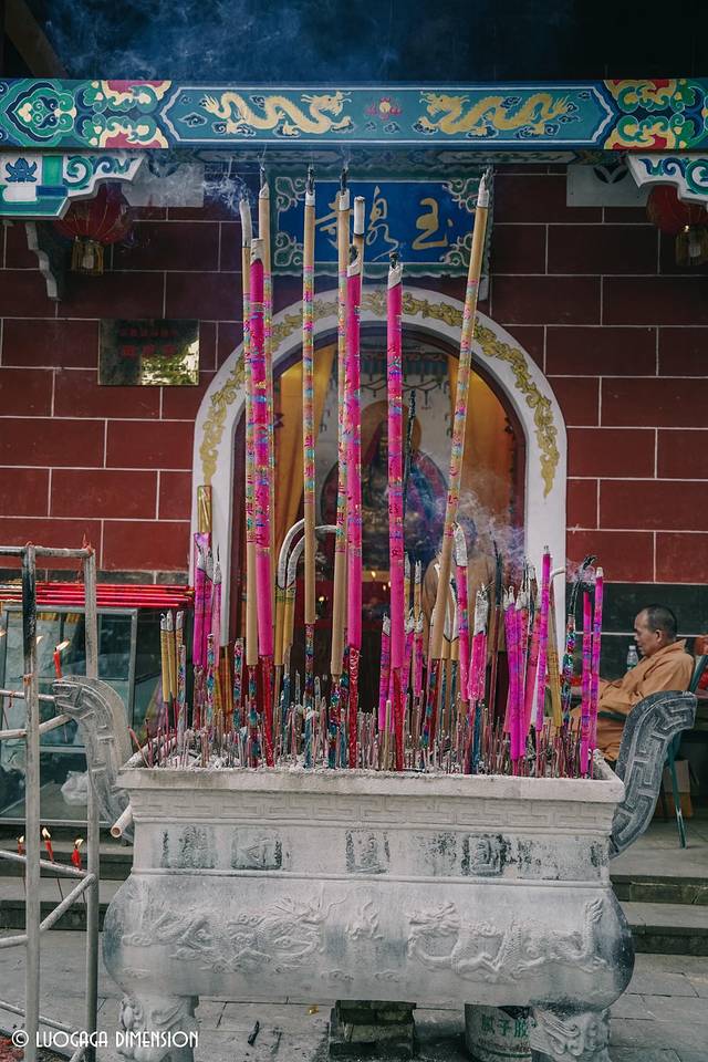 登上山顶,有一个玉泉寺,循环播放着《般若波罗蜜多心经》,寺庙不大,重在位于山顶的仪式感。