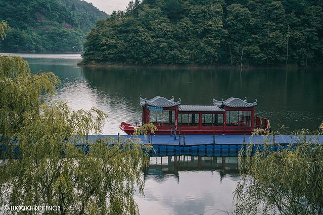 泛舟湖面,非常凉爽,即使有阳光,也不会很热。刚下过雨,山间有一些雾气,看着很有仙气。