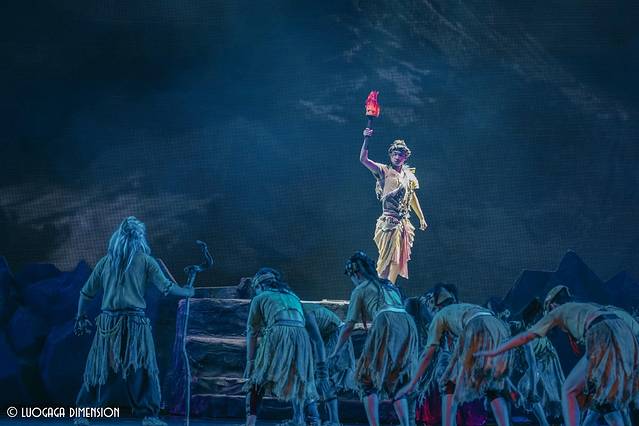 主要讲神话传说故事,包括仙女下凡,还有高空杂技表演。