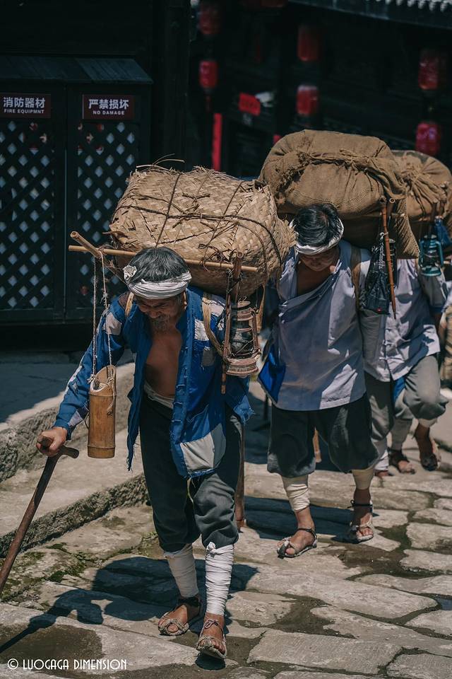 古时候背盐的“背二哥”们身上平均都会背200斤的盐去跨省交易,如今的沉浸式表演,表演者们身上也都背着实打实的80斤,非常辛苦,身上的每一个物件都是古时候的标配,无不体现着劳动人民的智慧。他们喊着号子一直往上爬,很有古时候的感觉,值得一看!