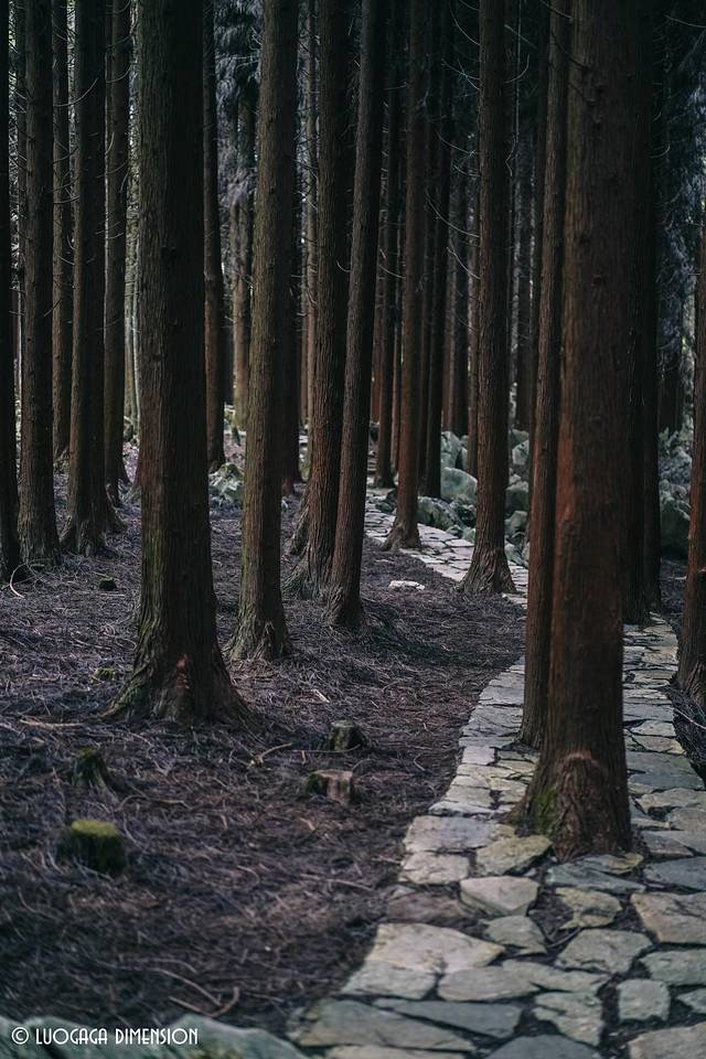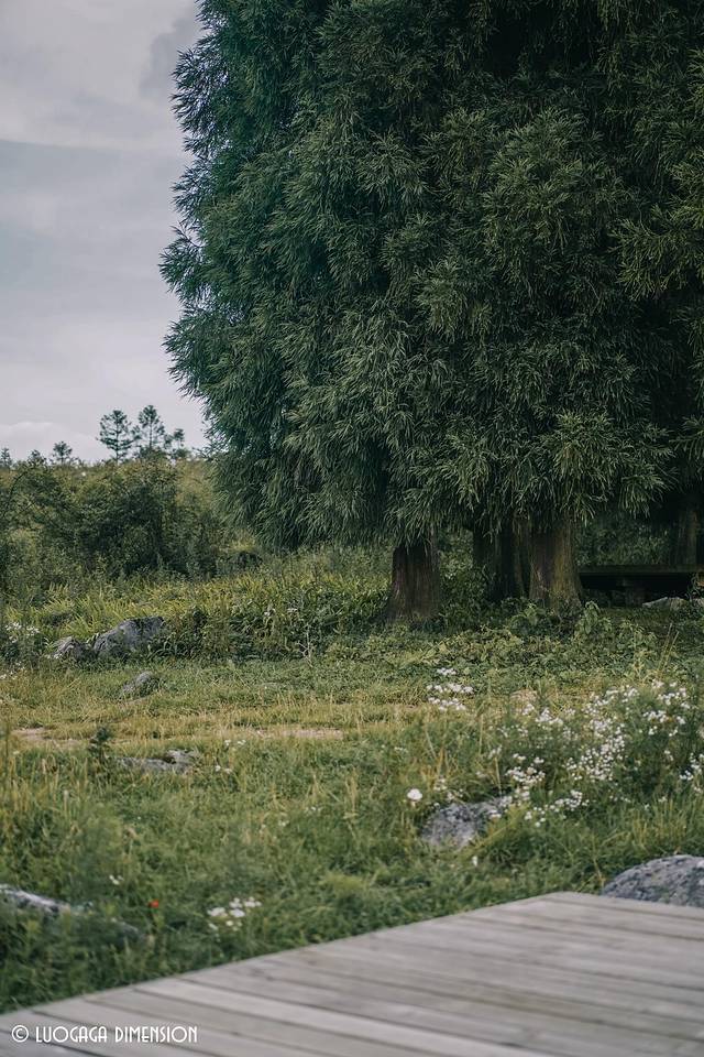 映像深刻的还有这里的杉树林,这是千野草场的一大特色,杉树林中设有一些石头步道,拍照很森系。