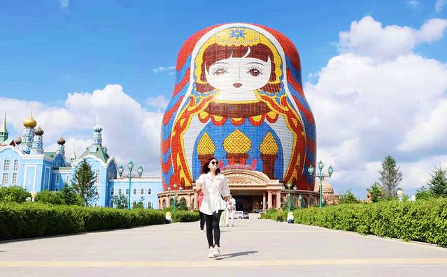 这一天一大早从巴尔虎大帐出发前往非常具有俄罗斯特色的满洲里,要说到了满洲里就感觉到了俄罗斯一点都没错,满洲里这个地方随处可见俄罗斯风情建筑,尤其在套娃广场附近,随处可见大小套娃,不论是厕所、矿泉水、椅子、大小型建筑,感觉走进了套娃王国,绝对让你瞬间穿越的即视感,这也是边境城市最大的特色,据说疫情之前很多俄罗斯人白天到满洲里工作,晚上有专门接他们回家的大巴车回俄罗斯,这个也真是绝无仅有。在满洲里必去的套娃广场,门票大约140元左右,加上大马戏大约200一人,但里面大大小小的套娃能供你各种角度拍摄还是很有意思,不过最具特色的就要数套娃酒店了,这个绝对是最大的套娃了,高高的耸立在广场旁边可以免费进去拍照哦,当然如果你想要住一晚也OK,普通房价格基本600-1000元左右,当然旺季除外。房间里面的设施从门到卫生间全部是大大小小的套娃设计,晚上一屋子套娃陪着你的即视感,是不是很贴心。