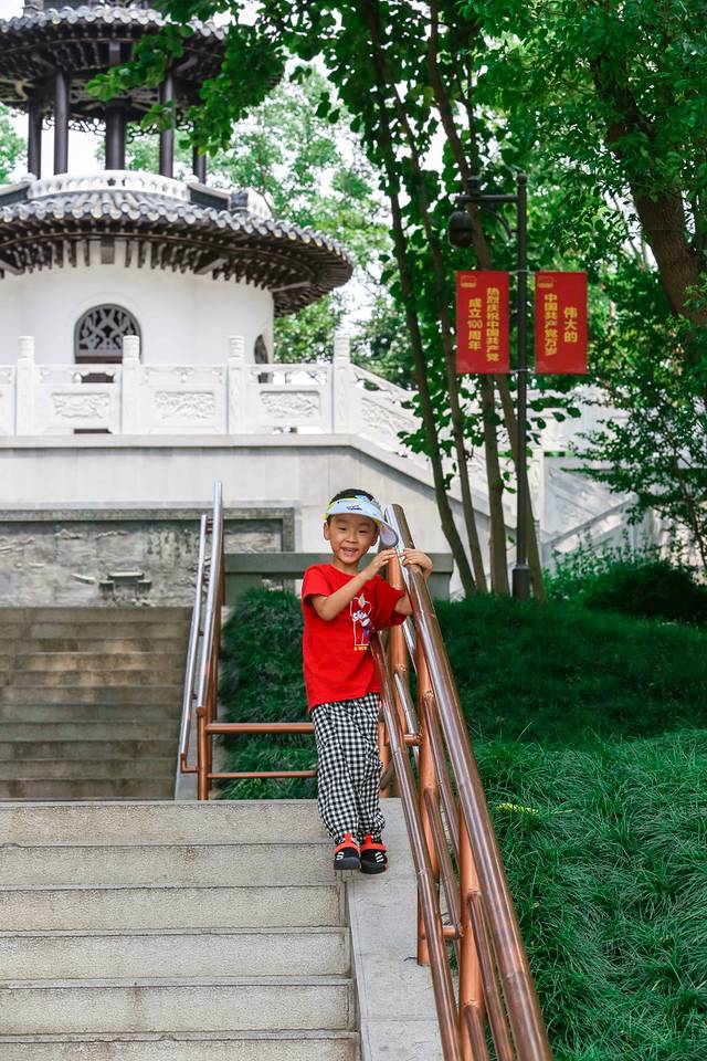 “绿”,确实是这里景观的代名词,层层的假山巨石掩映在苍翠之中,满眼生机勃发,仿佛在向游人诉说着“古渡今朝亦明媚”。