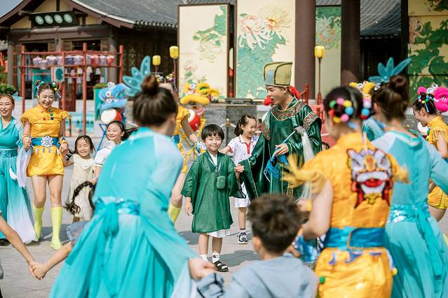 当然,夏日里的清明上河园,最不容错过的就是一场劲烈的水枪大战。开场先是民俗秀表演,完了,演员会给在场的大小朋友发放水枪,一场激战蓄势待发!