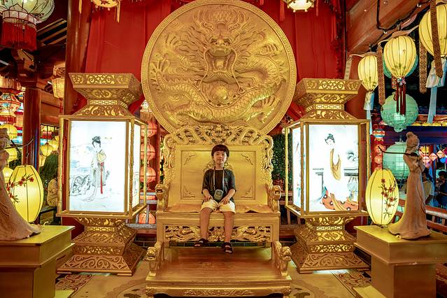 非要去坐一坐“龙椅”还让我给他拍张照片,哈哈哈
