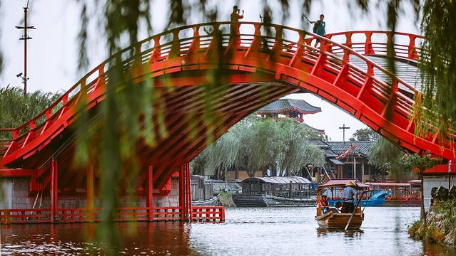 虹桥是清明上河园中的一处主要的景观。它横跨“汴河”,气势如虹,上可走马过人,下可载货行舟,它也是 中国 古代桥梁史上的一项重要的创造,被列为 中国 十 大名 桥之一。红色的桥体在一片青翠的园林里也格外打眼,园子里逛了又逛,可是每经此处,我们还是要忍不住举起相机。