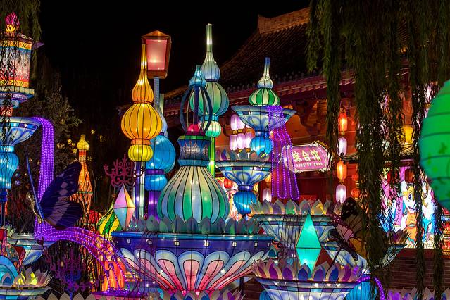 各种造型的灯笼、点亮道路的宫灯,微风拂过,轻轻的摆动,那样的夜真美妙!
