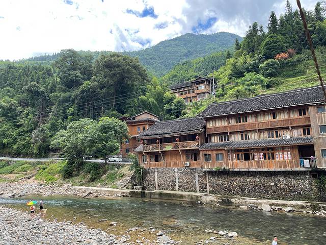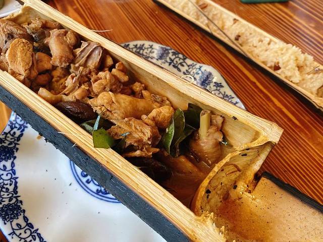 早上八点多师傅就来酒店接我们,还挺方便的,八个人一车接完九点就往龙脊梯田出发。两个多小时的车程,到达长发村。跟团不是直接去梯田的,要在这里逛一下,有兴趣的可以看看演出,演出是收费的。然后师傅带我们去吃中饭,因为送一个小竹筒饭,你想象不到的小,所以就在那家店吃饭了,但是价格真的小贵。