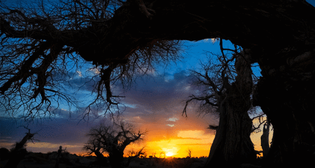 植物的“活化石”,一棵胡杨的主根,可以穿越地层一百多米,日落时分来到大漠西怪树林茂密的胡杨千奇百怪,神态万般,漫步在浓郁的胡杨林中,仿佛进入神话般的仙境。