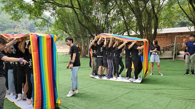 到达团队活动场地,分组建立团队文化(队名+口号+精神+士气展示),拥有自己的队名口号建立起团队凝聚力的归属感、荣誉感,在接下来的项目中团队一起去完成相应挑战,促进成员对团队的磨合和认可度,同时也反应领导者在团队中所起的作用。本团队活动主要让队员收获团队成员利益一致,关系和谐,互相关心、爱护和帮助的意识。 拓展团体项目:罗马架、挑战160、疯狂世界杯、沙场秋点兵、双腿夹球、达芬奇密码、共同进退、敲响幸运锣、击鼓颠球、盲人摸像、竹筏接力、射箭比赛、台球比赛、乒乓球比赛等。