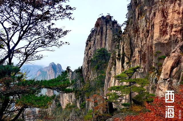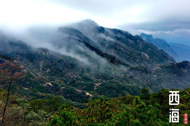 我们没有选择缆车而是直接步行上山,从云谷寺到白鹅岭一路上都是小雨相伴,虽然断断续续但确实对欣赏风景造成了一定影响,好在从始信峰到西海大峡谷的路上雨基本上停了,但是在刚才持续的降雨影响下为了保证游客安全西海大峡谷暂时关闭,只能从观景台上欣赏它的景色。