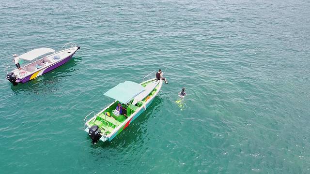 海岸沙滩边的水质不行,不适合浮潜,得搭船上“小星山(海岛)” 10来分钟航程(这10来分钟算在2小时游玩时间里,如下);