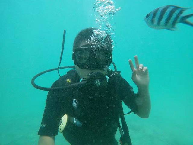 深潜则是背上氧气罐进行深度潜水,但发现应该是项目教练怕麻烦,仅带着游客在3米左右的浅水处游玩,而游客大多是初学者,自己又不敢潜到深处…收费350元~500元/1小时,所以是花了更多的钱体验了和我差不多的内容… 不推荐。