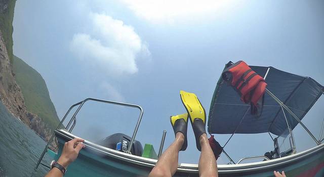我和老友2人包船,后面加钟2小时,花了1000大洋,船主人很好,所以懒得砍价,他还愿意帮我把小艇也带上船,为人健谈,航海经验丰富,很有意思,看我们带了拍摄工具,主动带我们去了没人或人少的地方;