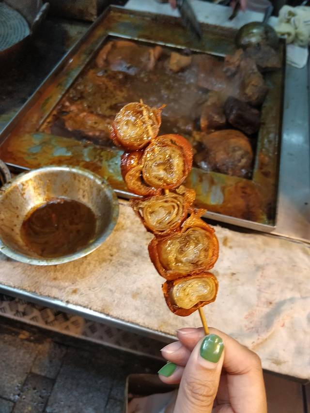 炸大肠:爆赞!别家的都比不上!原有臭臭的味道已经被卤完再炸的工序完全处理掉了,外焦里嫩,配上料汁,噢让人怀念。